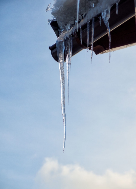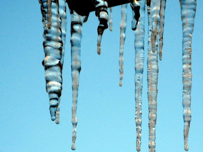 "기후학자로서 여러분에게 경고합니다. 고드름이 생기는 것은, 지붕에서 녹은 물이 건물의 측면으로 흘러 떨어지기 때문입니다"