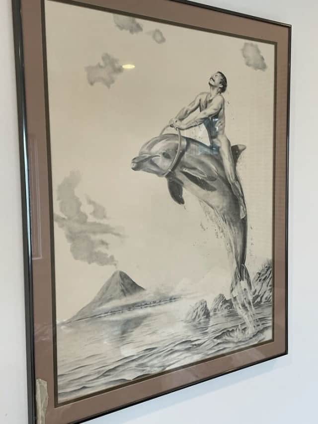 ▲ 알몸으로 돌고래를 타고있는 중년