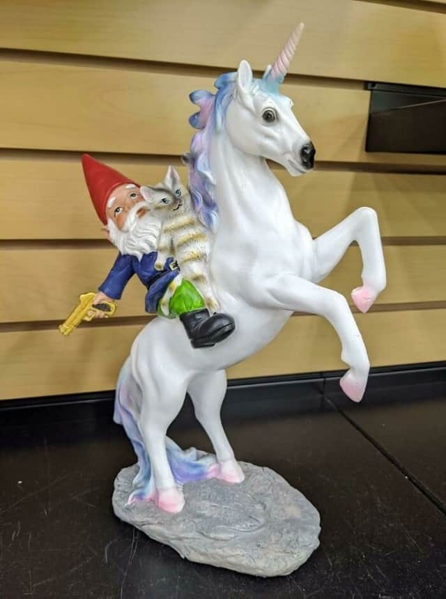 ▲ 유니콘을 타고있는 고양이와 난쟁이...근데 왜 총을 가지고 있을까?