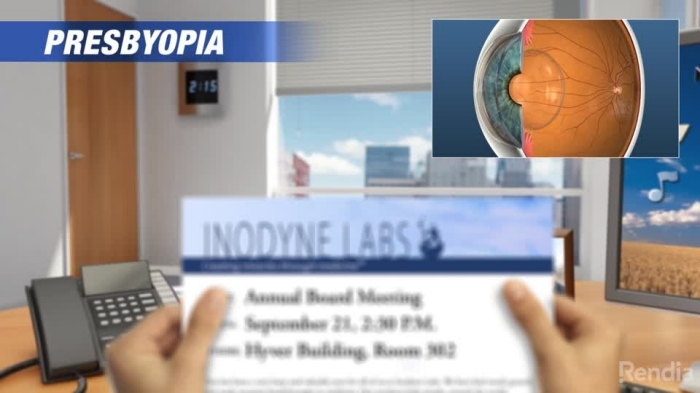 지금까지는 안경이나 콘택트 렌즈 등이 일반적이었지만, 최근, 노안을 개선하는 치료약의 개발이 진행되고 있고, 요즘, 하루 한번 투여로 최대 6시간의 효과가 지속되는 최초의 점안약(안약)이 미국 식품의약국(FDA)에서 승인되었다.