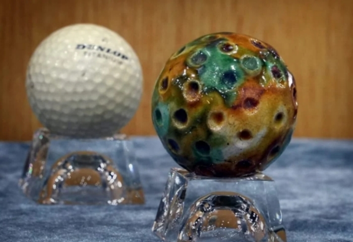 발견된 공은 지름이 5cm 정도이고, 도자기로 이루어져 있었고, 현재의 골프공과 같은 딤플도 붙어 있었다는.