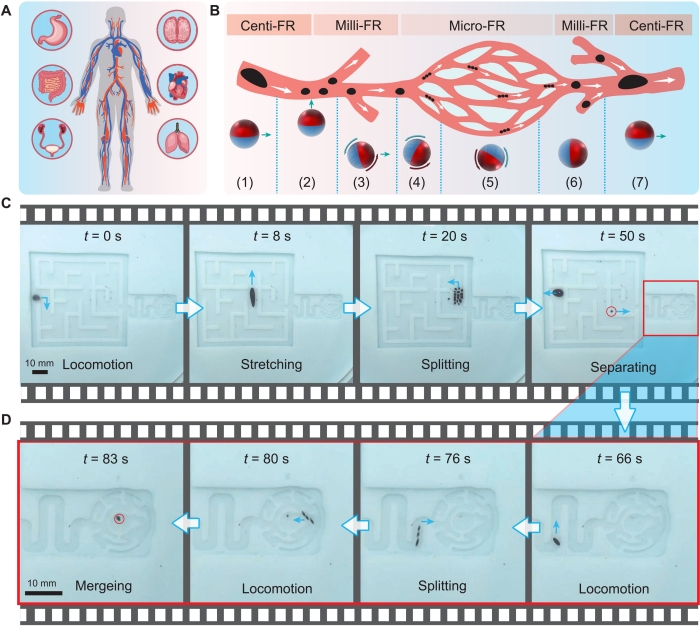 실험에서는, 자성유체로보를 외부의 자기장에 의해 조작함으로써, 복잡한 미로 속을 유도하고 때로는 형상을 바꿈으로써 장애물을 극복할 수 있다는 것도 증명했다.