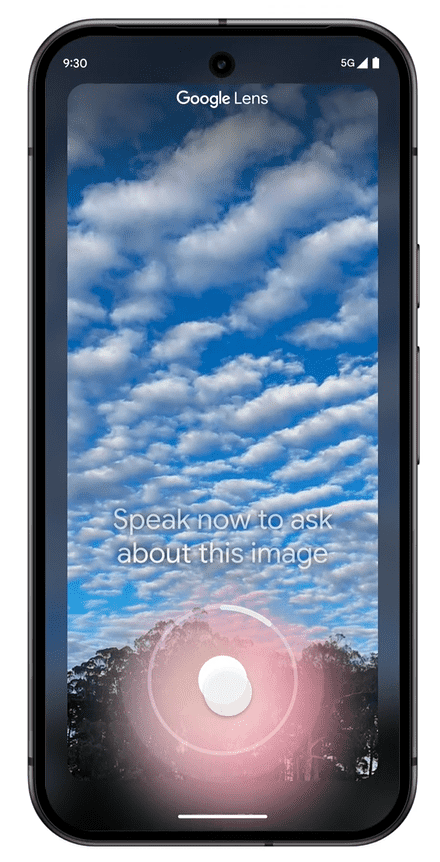 Search Labs에서 AI 기능의 테스트에 옵트인 하고 있는 경우, Google 렌즈의 셔터 버튼을 눌러 두면 동영상이 촬영되어, 음성에 의한 질문을 할 수 있고, 또한 검색 결과에 있는 마이크 아이콘을 탭하여 다른 질문을 하는 것도 가능하다.